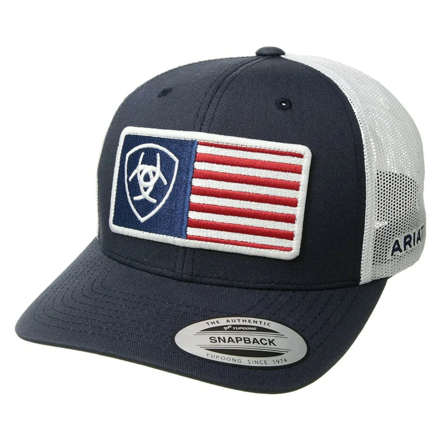 - Navy front with American Flag patch.