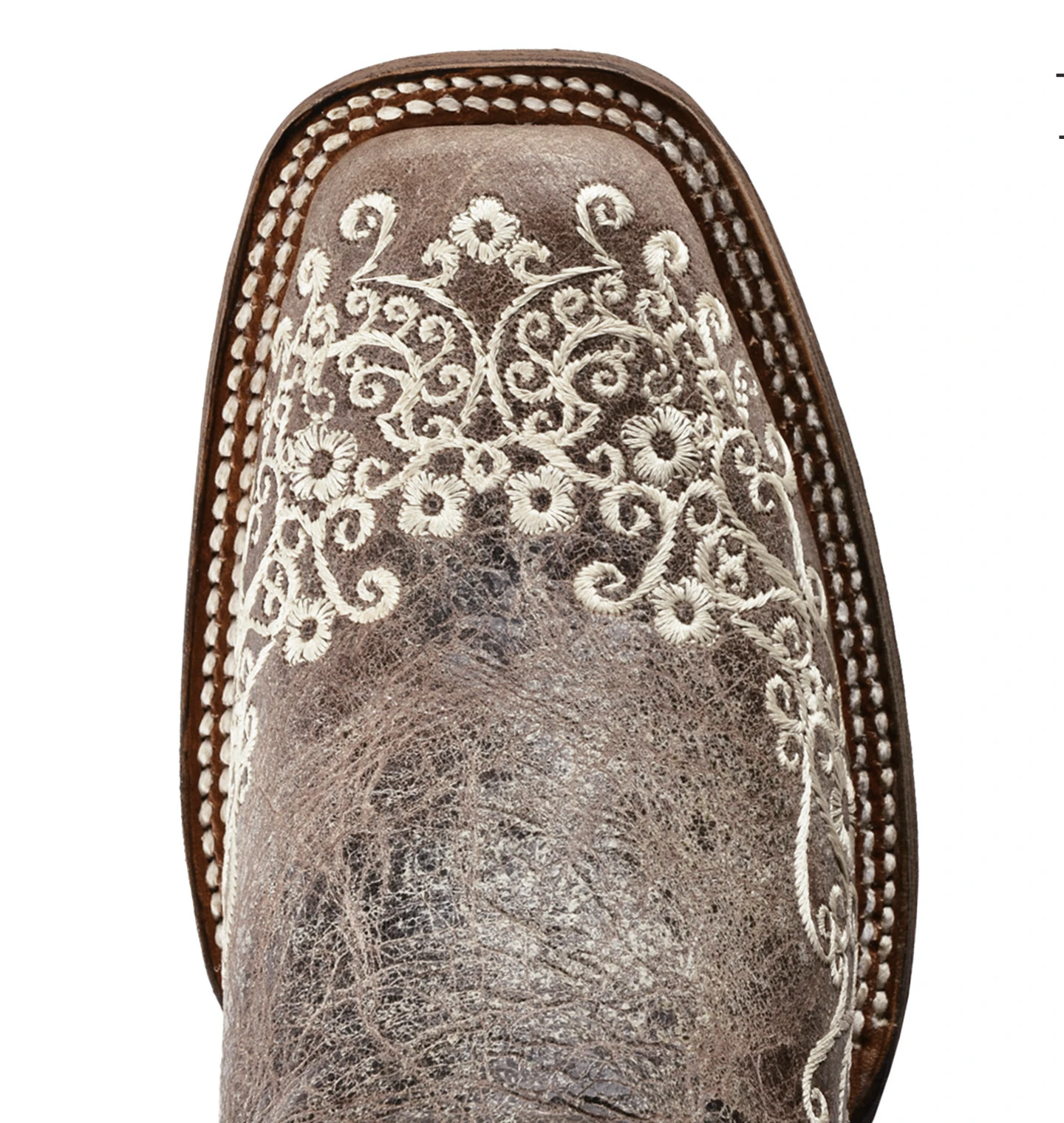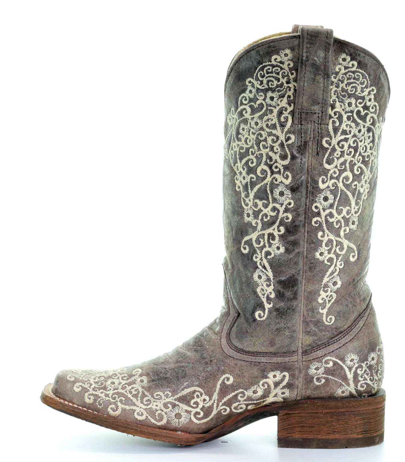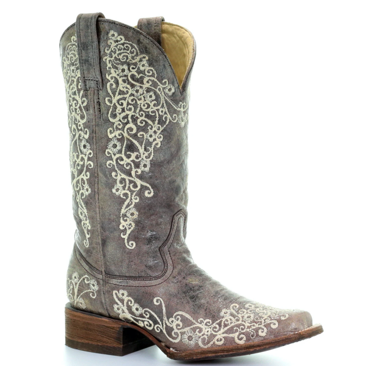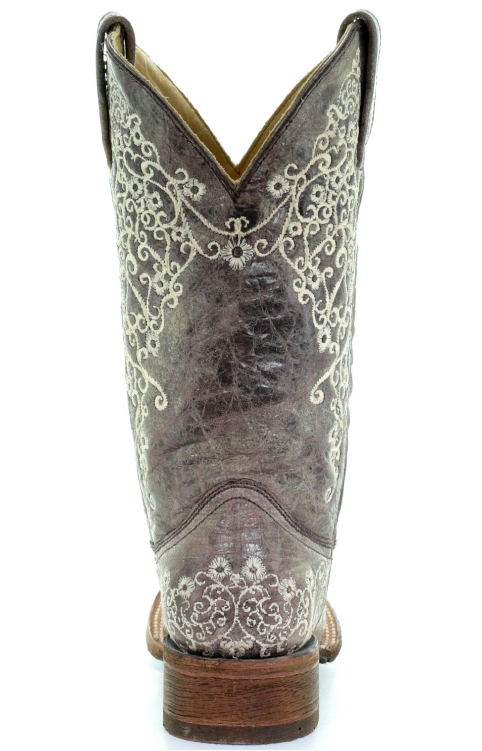 As one of Corral’s most popular square toe boot, the Brown Crater Bone Embroidery Square Toe is the perfect classic touch for any occasion. It features a gorgeous contrast of lace embroidery and a rustic leather finish.