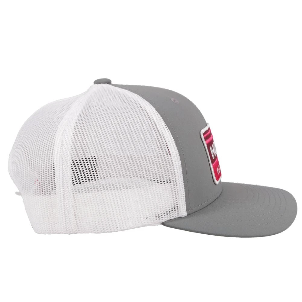 - Grey with white mesh, pink/white patch